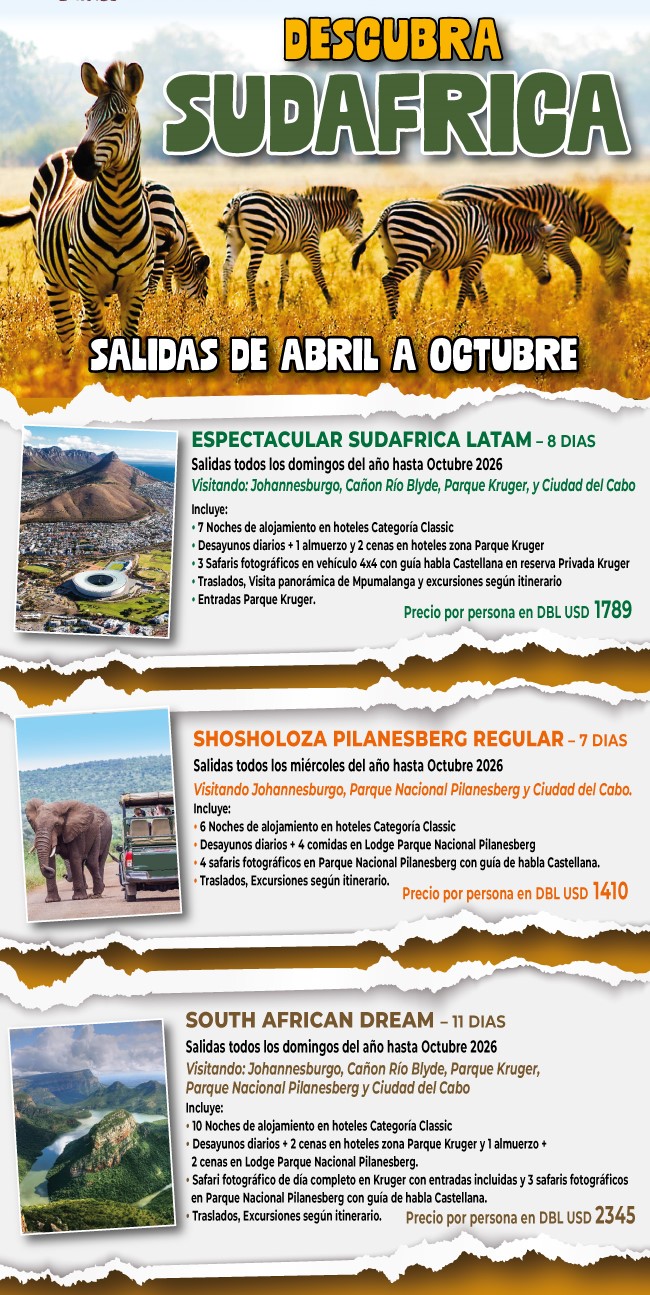 SUDAFRICA CIRCUITO ABRIL A OCTUBRE 2026
