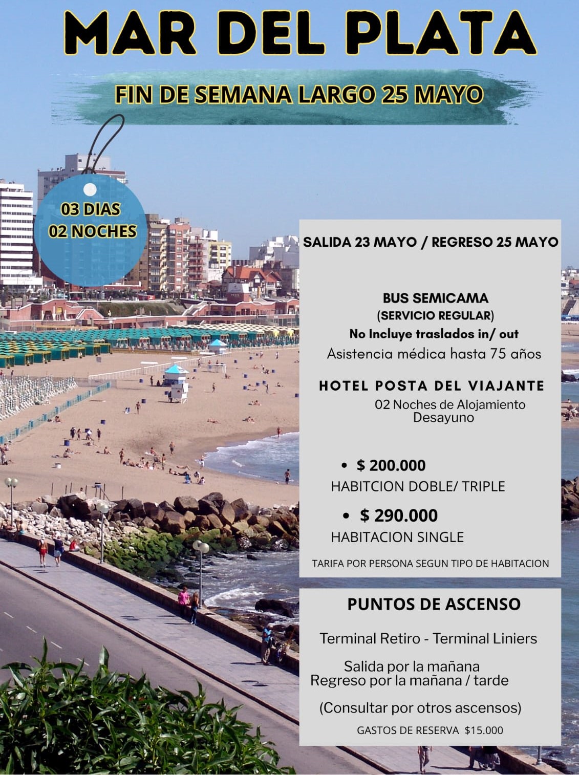 MAR DEL PLATA FIN DE SEMANA LARGO 23 DE MAYO 2026